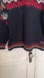 Elegant pre-owned Nordic pattern with black, red, and white hues. Perfect for warmth and style. Approximately 23”from pit to pit 28” length.