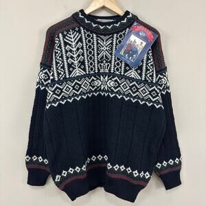 Dale of Norway Navy Blue Fair Isle Thick Pullover Sweater VTG NWT Mens L Read