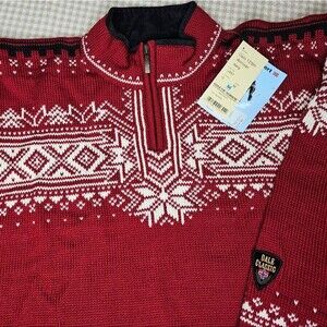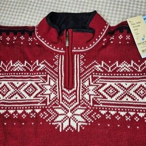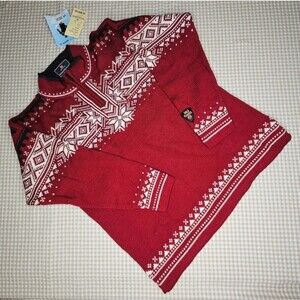 Dale of Norway Vintage 125th Anniversary 2004 Red Fair Isle 1/4 Zip Wool Sweater