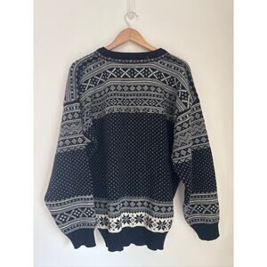 Dale of Norway Vintage Fair Isle Wool Classic Nordic V-Neck Sweater -Large