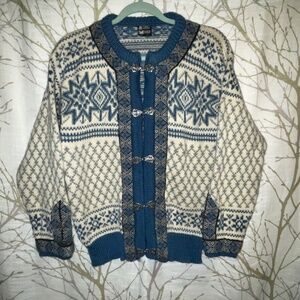 Dale of Norway Vintage Fair Isles Wool Blue & Cream Cardigan SZ S