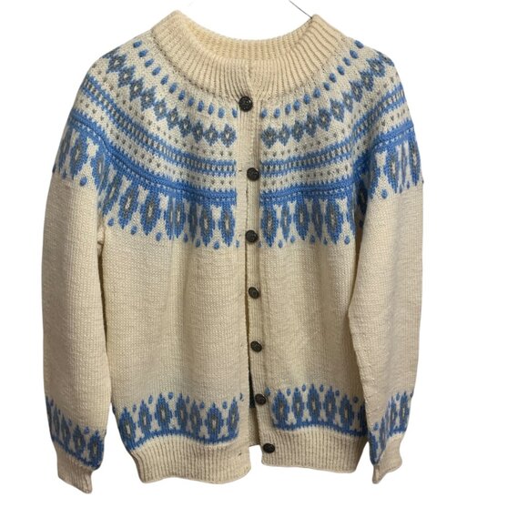 Dale of Norway Women’s Cardigan Pure New Wool Blue Ivory Fair Isle Sz L-XL