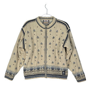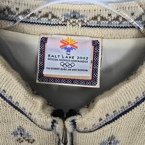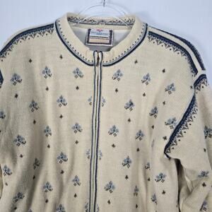 Dale of Norway Wool Zip Cardigan 2002 Salt Lake City Olympics Cream Blue Gray M