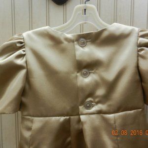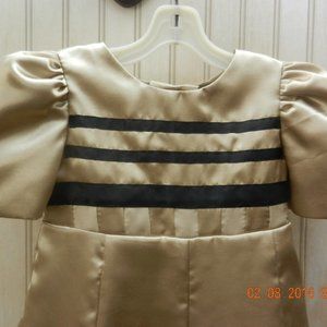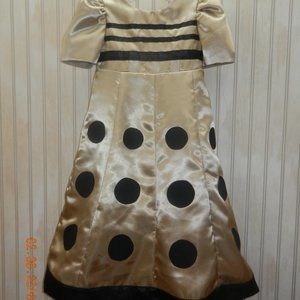 Dalek inspired Flower Girl Dress in Champagne. Hand washable, poly satin. Mid calf.