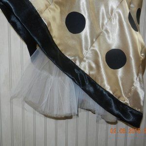 Button closure. Fully lined in cotton with layers of Tulle to make dress stand out. Can be ironed if needed inside out, poly setting.