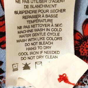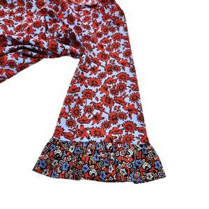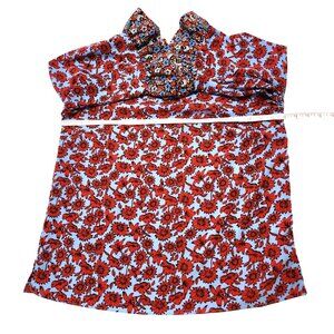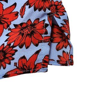 Dalia Blouse Contrasting Bell Sleeves Light Blue & Red Floral Scoop Neck…