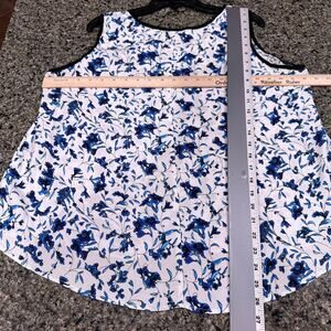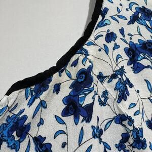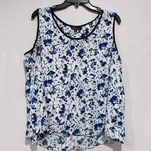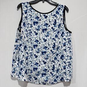Dalia Blouse Women M White Blue Floral All Over Print Sleeveless DISCOLORATION