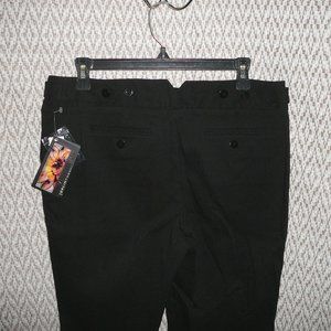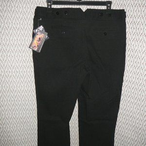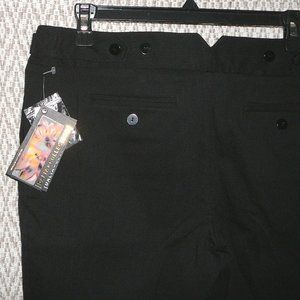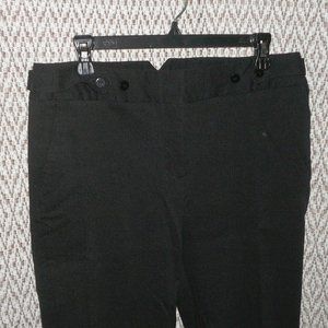 New with tag, size 12, Dalia Collection black pants with pockets. 78% rayon, 19% nylon, 3% spandex. Comfort stretch, lots of stretch. Zip front with hidden hooks. Button & tab detail at waist. (Flare/boot cut). Size 12. Waist unstretched 33". Hips 39". Inseam 31". Ankle opening 9". Front rise 10". Back rise 13".