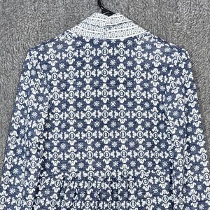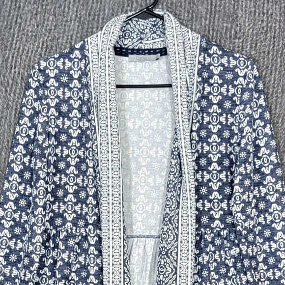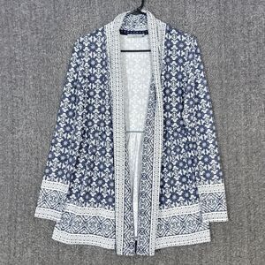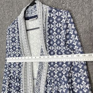 Dalia Cardigan Womens Small Blue & White Open Front Soft Stretchy Boho Tunic Top