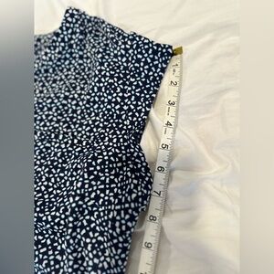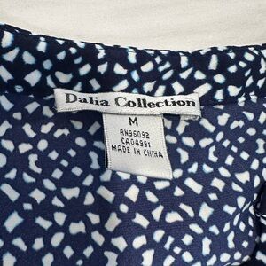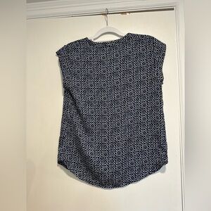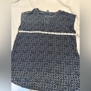 Dalia Collection Blouse Womens Sz:M cap sleeve V-Neck Blue White Geometric pattern. Single faux pocket. Great used condition. Light wear. No rips, stains or defects. Please see pictures for measurements.