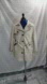 Stylish cream trench coat with black piping. Features a belted waist and button closure. Ideal for versatile wear.