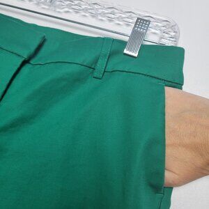 Really good. Gently preowned condition. No visible flaws. Classic Dalia Collection “Modern Fit” ankle pants in a rich green cotton blend. Mid-rise tailored style with zip fly, button closure, and front slash pockets. Slim through the leg with ankle length cut. 97% Cotton / 2% Spandex