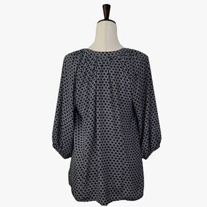 Dalia Collection Navy Blue Patterned Split Neck 3/4 Sleeve Chiffon Blouse Size M