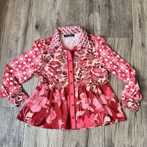 Dalia MacPhee Collared Shirt Dress Womens Red Pink Geo Floral missing Belt #148