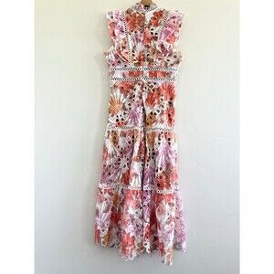 Dalia MacPhee lance Orange pink Hollow short sleeve luxury Maxi midi Dress L
