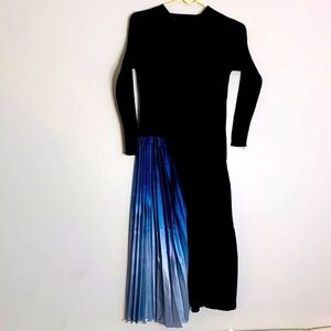 Dalia MacPhee long sleeve a line midi sweater dress pleated ombre black medium