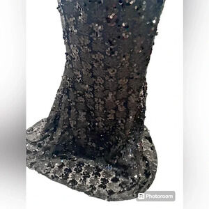 ๐ Dalia Macphee Black Sequined Illusion Waist Gown Extra Large