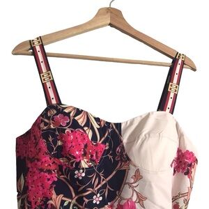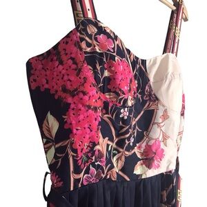 Dalia Macphee Medium Bustier Top Pleated Skirt Floral Dress Coquette Romantic