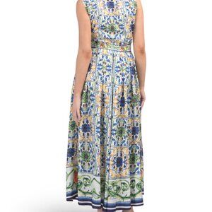 Bring a burst of Mediterranean energy to your wardrobe with this Dalia McPhee sleeveless maxi dress. Crafted from delicate, airy fabric, it’s light, flowy, and perfect for warm weather. The vibrant tile print evokes Italian vacation vibes, while the removable belt allows for versatile styling — swap for a straw or raffia belt for a relaxed, resort-ready look. True to size, flattering, and comfortable, this dress pairs beautifully with espadrilles, sandals, or wedges for effortless summer style.