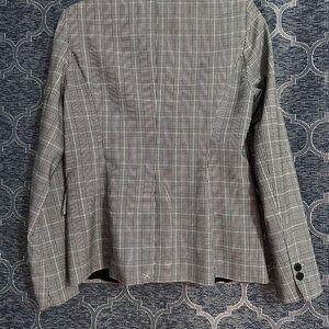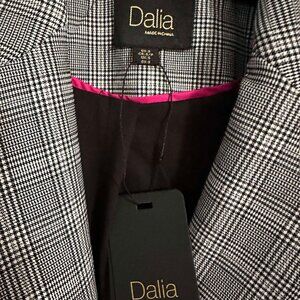 Dalia NWT women's small fully lined blazer/jacket black,white,gray plaid 1 button closure ptp 18'' length 25''