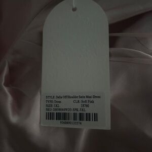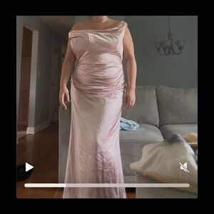 Beautiful maxi dress from Meshki in 3X in a gorgeous light pink. Great for a wedding or event! I couldn’t get the dress to zip on my chest which is exceptionally large. Missed the return window. My loss is your gain Dress has great internal structure and could be worn bra less This dress is currently onsite for 239 dollars
