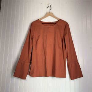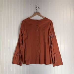 Dalia Rust Orange Button Back Blouse XL Long Sleeve Tie Cuff Minimalist Top