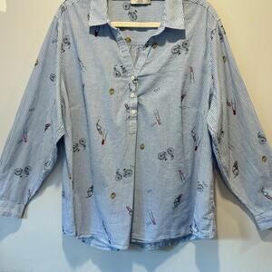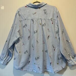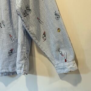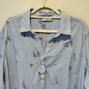 Dalia Striped Printed Lightweight Cotton V-neck Contemporary Button Blouse Shirt