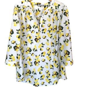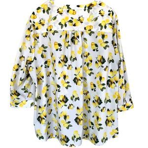 Dalia Top Women's Size 2x Colorful Lemons Split Neck Line Tuxedo Pleated Back