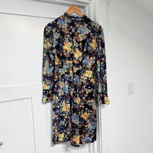 Dalia Macphee Burnout Floral Velvet Metallix Ruffle Runway Dress in Navy