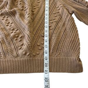 Dalilah Wool Blend Chuncky Ribbed 3D Textured Knit Fall Camel Tan Sweater, S/M
