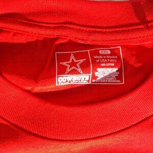 NFL authentic apparel, new with tags (NWT), red short sleeve men's XXL shirt, Dallas Cowboy practice football tee team shirt. 100 percent USA cotton fabric for breathable comfort! Includes original tag with official silver NFL sticker. Beautiful contrast with bold white lettering that pops against the vibrant bright red background. Perfect for tailgating, workouts, or casual wear. Show your ream spirit, on game day, in cotton comfort.