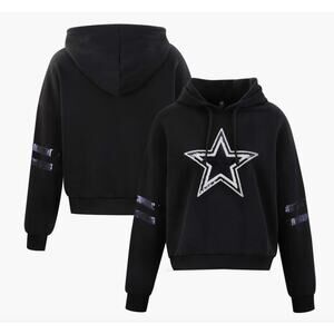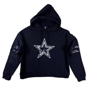 Dallas Cowboys Cropped Hoodie M Sequin Star Cozy Black Fleece Pullover NFL Cuce