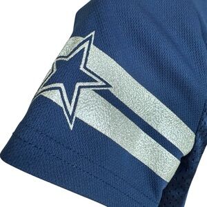 Cheer on the Dallas Cowboys in style with this Ezekiel Elliott jersey, perfect for young fans who want to show their team spirit. Crafted from 100% polyester, this jersey is both comfortable and breathable, making it ideal for active play or watching the game. The authentic team logo and player name stand out in bold team colors with silver accents, ensuring your little one feels like part of the team. Whether it's game day, a sports-themed party, or just a day at the park, this jersey is a winning choice. Pre-owned but ready for more adventures.