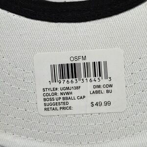 Style/Model info (from tag): Boss Up BBall Cap | Style#: UGMJ138F | Color: NWH | DIM: COW | LABEL: BU