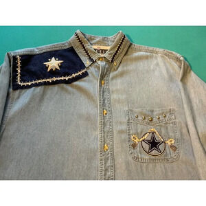 Dallas Cowboys Large Shirt Button Up Denim Embroidered spirit cliff eagle