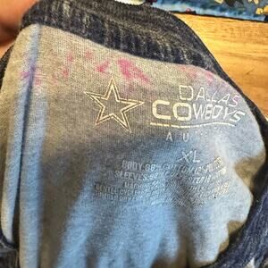 Writing on the inside collar. See pictures. You can see the writing through the shirt