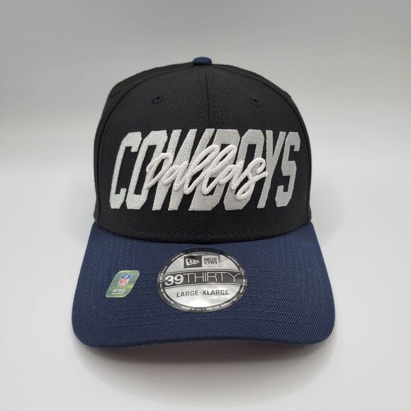 Dallas Cowboys Mens L/XL Hat New Era Flex Fit 39THIRTY Black Navy 2022 NFL Draft