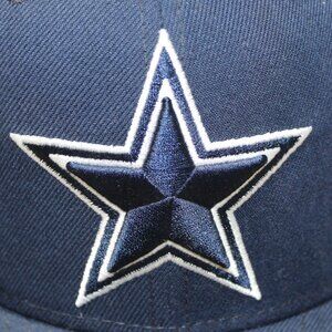 Show your team pride with this officially licensed Dallas Cowboys NFL hat by New Era. Featuring the iconic Cowboys star prominently embroidered on the front in navy blue with white outline, this 59FIFTY fitted cap offers a sleek and classic look for fans and collectors alike. The hat's structured crown and flat brim maintain a sharp silhouette, while the navy blue colorway stays true to the team's signature palette.
