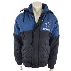 Dallas Cowboys Pro Player NFL VTG Spell Out full Zip hooded Puffer Jacket Medium