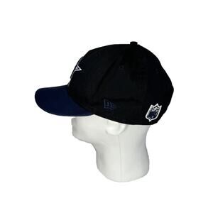 Show off your love for the Dallas Cowboys with this stylish New Era snapback hat. The 9Fifty cap features the iconic team logo embroidered on the front, while the black and blue bill adds a pop of color. Perfect for football fans of all genders, this unisex adult hat is a must-have accessory. Whether you're watching the game at home or heading to the stadium, this hat will keep you looking cool and feeling comfortable.