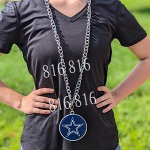 Showcase your Dallas Cowboys team spirit with this eye catching officially licensed team emblem necklace. This necklace boasts a 40” chain length and 3.5” plastic emblem that features a large full color team logo. You will be able to show others that you are the ultimate fan this season. Perfect for tailgating, sitting in the stands, or in the comfort of your own home!