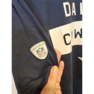 The product is a blue Dallas Cowboys Nike Tee Dri Fit shirt, featuring the official team logo and colors. This short-sleeved training shirt is designed for unisex adults and is officially licensed by the National Football League (NFL). Made by Nike, it is a quality sports apparel item for fans of the Dallas Cowboys football team.