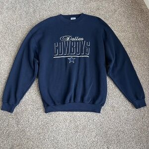 This vintage 90's sweatshirt has a classic Dallas Cowboys logo and star embroidered on the front. There is some pilling on this but is in good used condition.