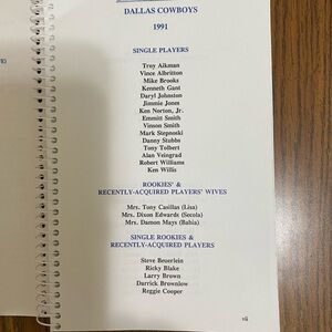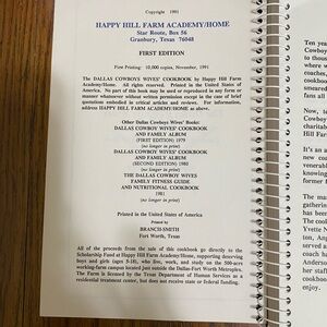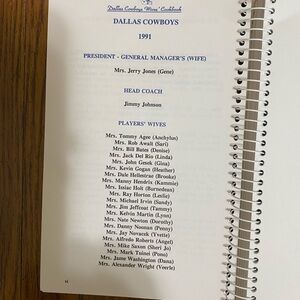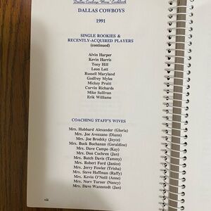 Spiral-bound cookbook featuring the Dallas Cowboys. Includes colorful vegetable imagery on the cover. Includes photos of the players and their families. It is from 1991.