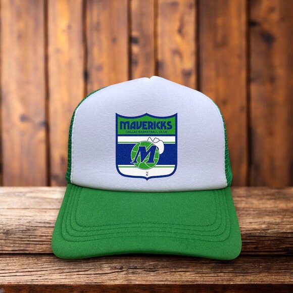 Dallas Mavericks Mens Trucker Hat Green Snapback Retro Logo Basketball Cap