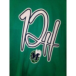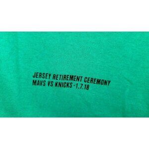 I have two of the tees, both are XL but one is missing the size tag. Both are brand new (someone tore the tag in half when they pulled the sales tag off).. They have 12 H (12 is his number and H for Harper). They also say "Jersey Retirement Ceremony, Mavs VS Knicks - 1.7.18"