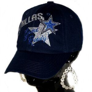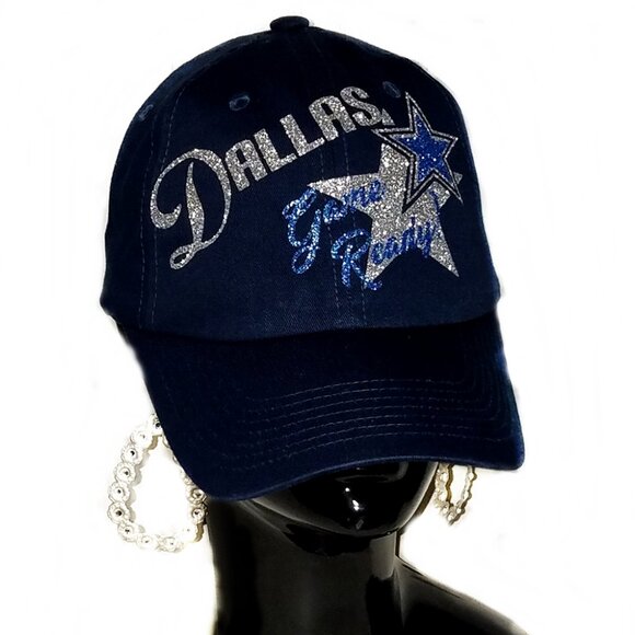Dallas Game Ready!!! Navy Fitted Adjustable Baseball Cap with Shiny glitter lettering. Game Day Fashion!!!