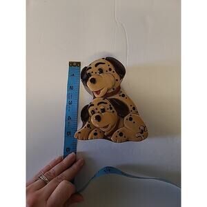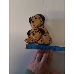 Keywords: Dalmatian Wooden Puzzle Box Red Felt Lined Lacquered 3 Pieces Puppy Dog Trinket