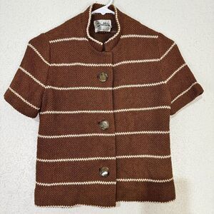 Dalton Knit Sweater 1950 Women Brown Striped 3 Button Sz 10 Short Sleeve Vintage