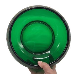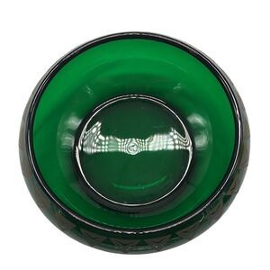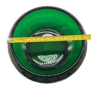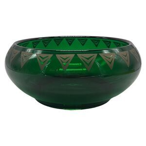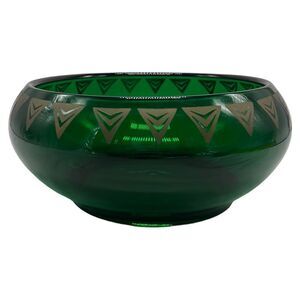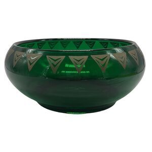 Dalzell Viking Bowl Vintage Green Glass Gold Triangles Hollywood Regency Heavy